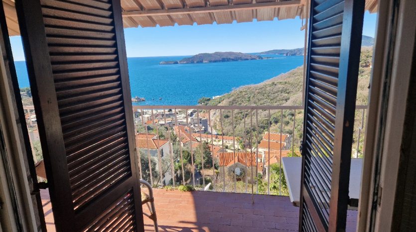 Spoljne stepenice vode na poslednji nivo, gde se nalaze još dve sobe, dva kupatila, mini kuhinja i terasa sa otvorenim pogledom na more i Pržno, koja predstavlja poseban kvalitet ove nekretnine.