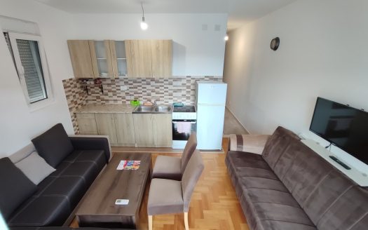 Na prodaju lijepo opremljen, jednosoban stan u Budvi. Stan zauzima površinu od 45 m2 i nalazi se na sedmom spratu, kod restorana Kužina. Ova nekretnina se sasto ...
