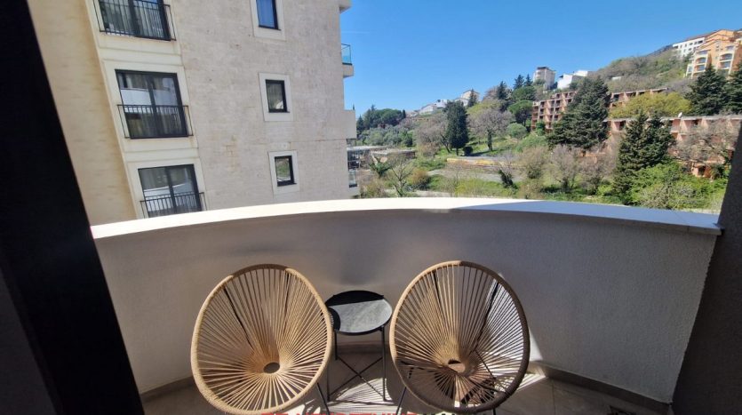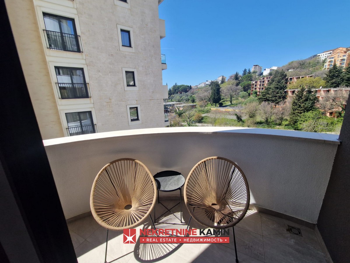 Prodaje se moderan i potpuno opremljen dvosoban stan površine 54m², uz dodatnih 11m² terasa, u Bečićima, u novoj i kvalitetnoj stambenoj zgradi Twin Towers.