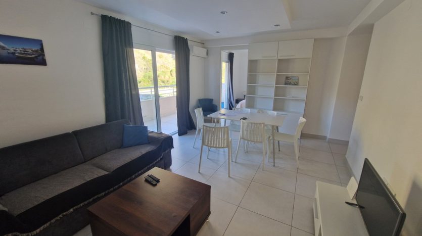 Sastoji se od hodnika, dnevne sobe sa kuhinjom, trpezarije, dvije spavaće sobe, kupatila i terase.