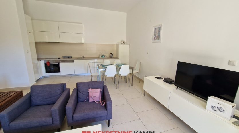 Stan je potpuno opremljen namještajem i tehnikom. Podno grijanje u kupaonicama.
